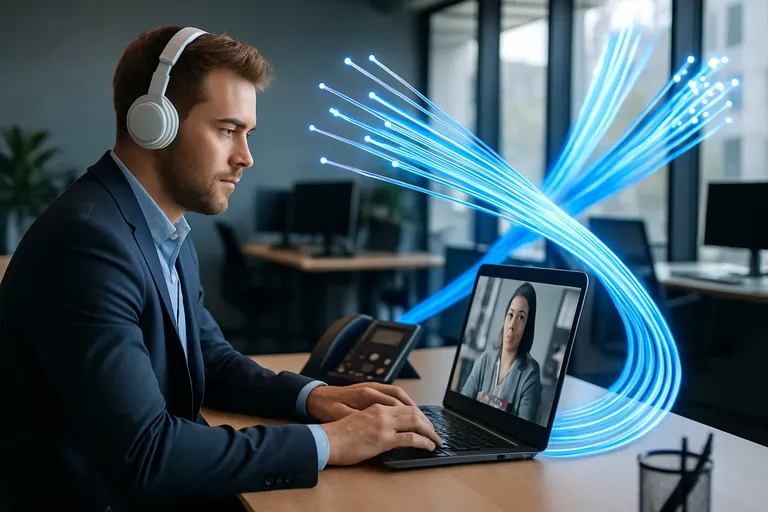 Met zakelijk glasvezel draaien je cloud-apps vlot omdat de verbinding lage latency en minimale jitter (variatie in vertraging) heeft. Daardoor reageren Microsoft 365, Google Workspace of je CRM meteen en blijven bestanden soepel synchroniseren. Voor VoIP en videobellen is de winst nog duidelijker: HD-beeld en helder geluid zonder haperingen, ook als meerdere collega’s tegelijk vergaderen of grote bestanden uploaden, dankzij symmetrische snelheden en voldoende uploadcapaciteit.